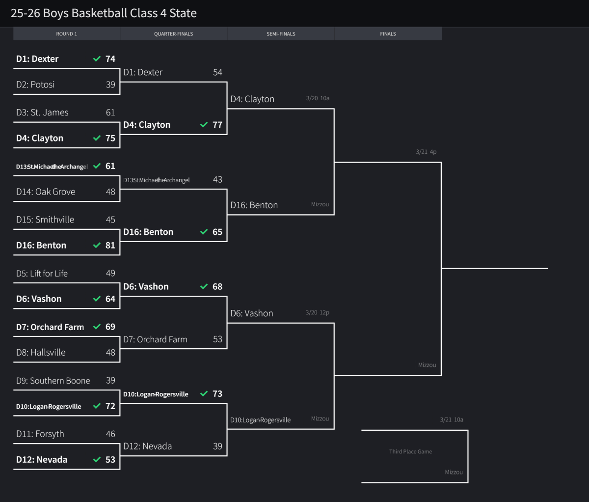 Stlprepsports.com 2025-26 MSHSAA Boys Basketball Class 4 State Finals (Semifinals) Share this: Share on X (Opens in new window) X Share on Facebook (Opens in new window) Facebook Like Loading...