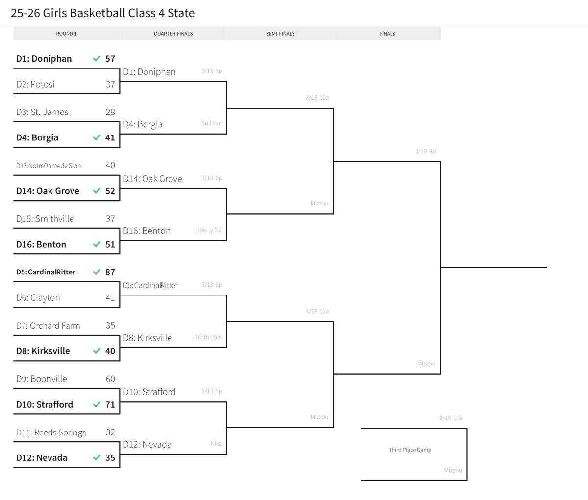 Stlprepsports.com 2025-26 MSHSAA Girls Basketball Class 4 State Finals (Quarterfinals) Share this: Share on X (Opens in new window) X Share on Facebook (Opens in new window) Facebook Like Loading...