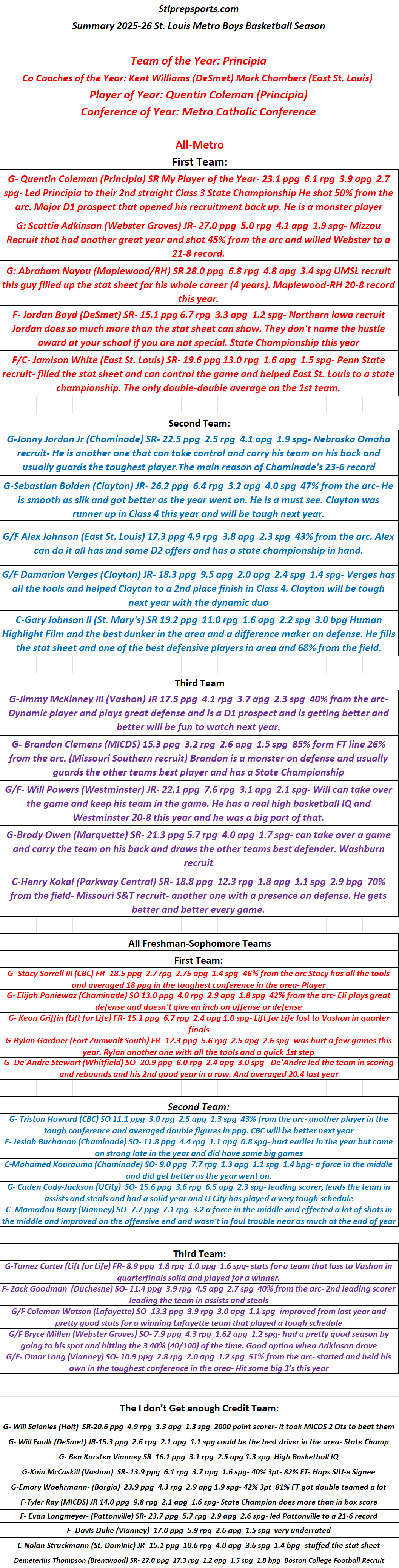 Stlprepsports.com’s 2025-26 St. Louis All-Metro Boys Basketball Teams Share this: Share on X (Opens in new window) X Share on Facebook (Opens in new window) Facebook Like Loading...
